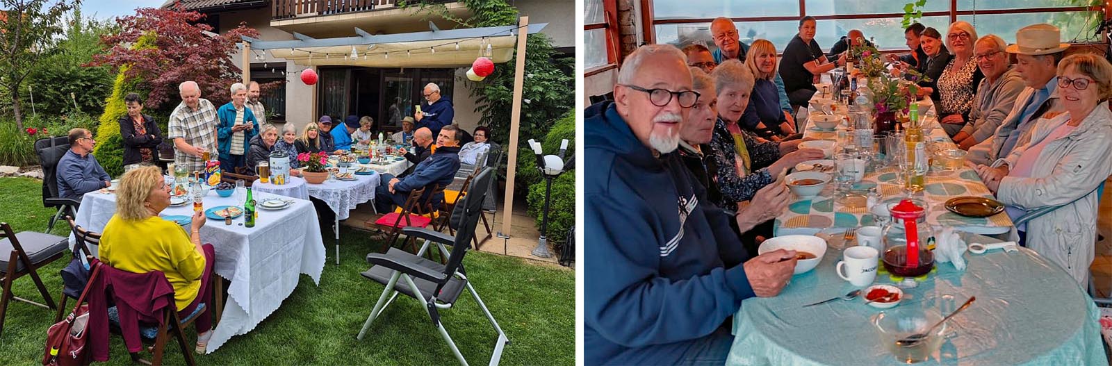 Nach den ersten vierundzwanzig Stunden bei den jeweiligen Gastgebern trafen wir uns zu einer Gartenparty bei bei Ewa und Ryszard. Liebevoll hatten sie für uns im Freien gedeckt. Sogar den Swimmingpool hatten sie für uns aufgefüllt. Dass aber ausgerechnet die Sonne fehlte, bekamen wir deutlich zu spüren. Wer seine Long Johns vergessen hatte, riskierte einen Schnupfen zu bekommen und der Gala am Abschlussabend – «soirée amicale» sagten dazu die beiden Jumeleure aus Frankreich, die gleichfalls an der Begegnung teilnahmen – fernbleiben zu müssen.