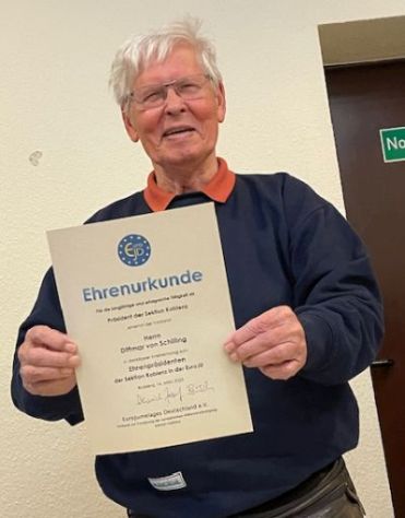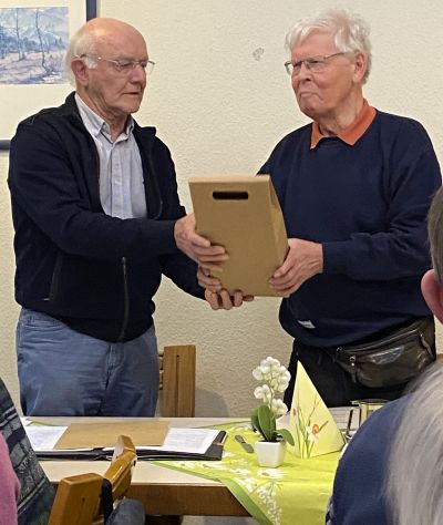 unser Ehrenpräsident mit Urkunde und Weinpräsent |