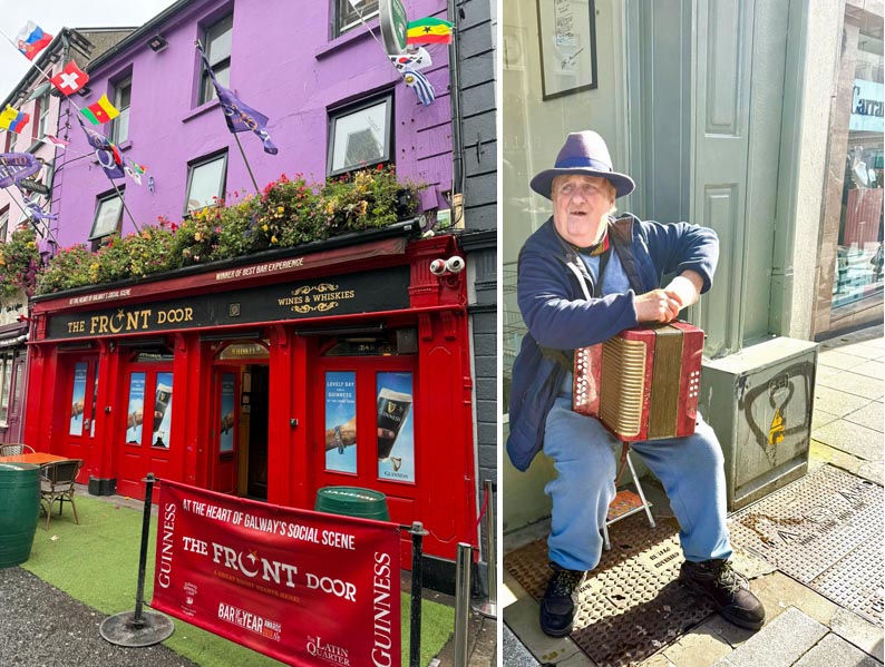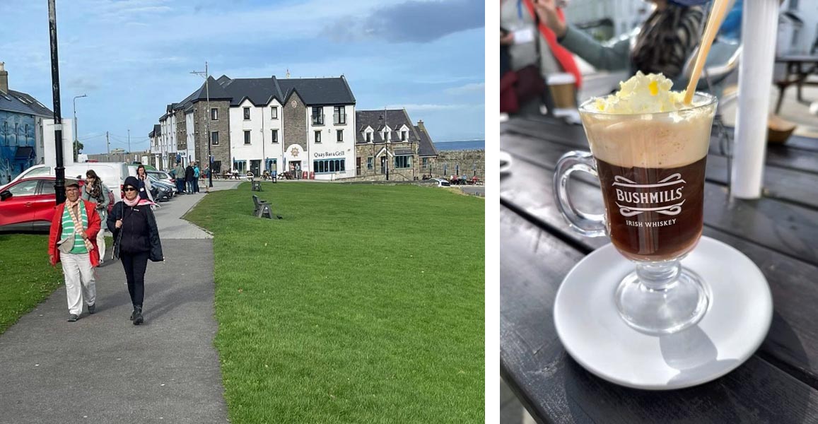 ein Gruppenfoto gemacht hatten, ging es los mit einem Spaziergang durch Galway. Unser Guide erzählte lustige Geschichten und zeigte uns in der historischen Stadt die engen Straßen mit den unzähligen Pubs, in denen viel Livemusik gespielt wurde.