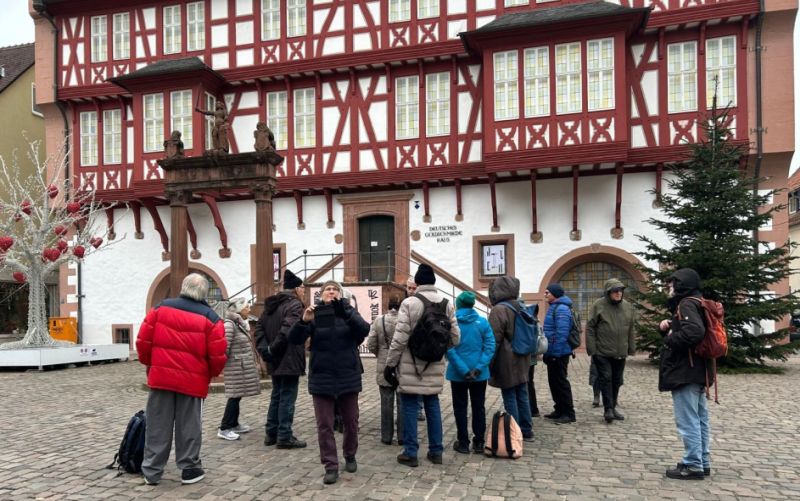 Am Morgen des 4. Dezember 2025 trafen sich 17 Mitglieder der Eurojumelages Darmstadt im Hauptbahnhof Darmstadt zu einer vorweihnachtlichen Tagesreise. Ziel der Reise war die Brüder-Grimm-Stadt Hanau.