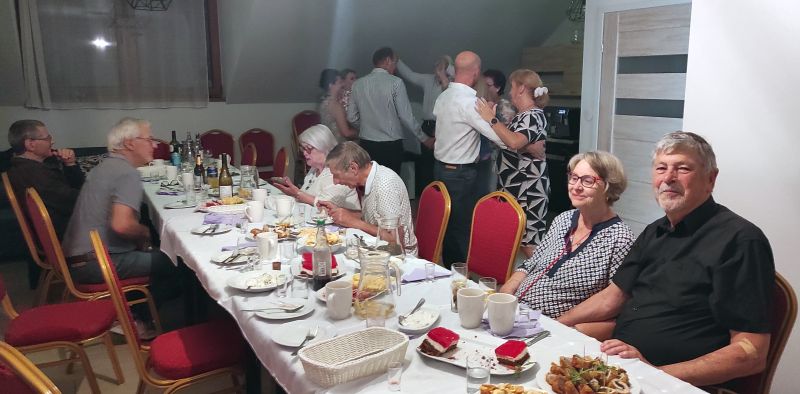 Nach den ersten vierundzwanzig Stunden bei den jeweiligen Gastgebern trafen wir uns zu einer Gartenparty bei bei Ewa und Ryszard. Liebevoll hatten sie für uns im Freien gedeckt. Sogar den Swimmingpool hatten sie für uns aufgefüllt. Dass aber ausgerechnet die Sonne fehlte, bekamen wir deutlich zu spüren. Wer seine Long Johns vergessen hatte, riskierte einen Schnupfen zu bekommen und der Gala am Abschlussabend – «soirée amicale» sagten dazu die beiden Jumeleure aus Frankreich, die gleichfalls an der Begegnung teilnahmen – fernbleiben zu müssen.