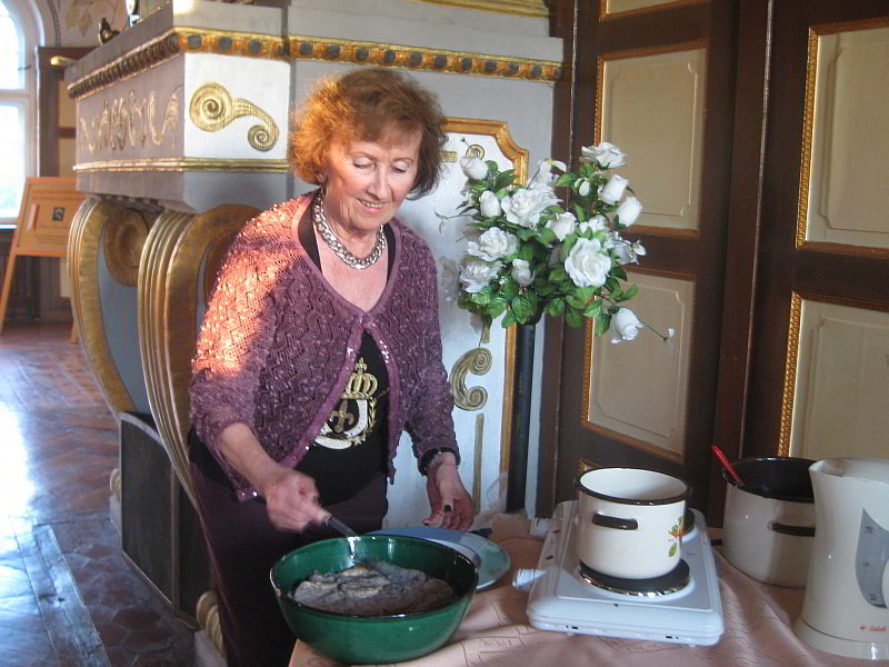 Die polnische Liza - also nicht unsere Lisa - hat einen CD-Spieler mitgebracht. Am 2. Mai bietet er uns beispielsweise vormittags Ausschnitte aus Chopins Schaffen dar. Anschließend begleitet er uns beim Polonaise-Tanzen. Das mag den einen oder anderen ein wenig schlauchen, und so wird ein für den Nachmittag vorgesehener Spaziergang gestrichen, muss ich feststellen, als ich mich mit Stock und Hut zur Stelle melde. Das Ziel, eine Burg, auf der ein Ritter-Festival irgendwo ganz in der Nähe stattfindet, soll jetzt mit dem Auto erreicht werden. Auch ich darf chauffieren. Allerdings ist die Autokolonne schon längst über alle Berge, bevor meine letzte Beifahrerin aus dem Schloss herausgefunden hat und zugestiegen ist.